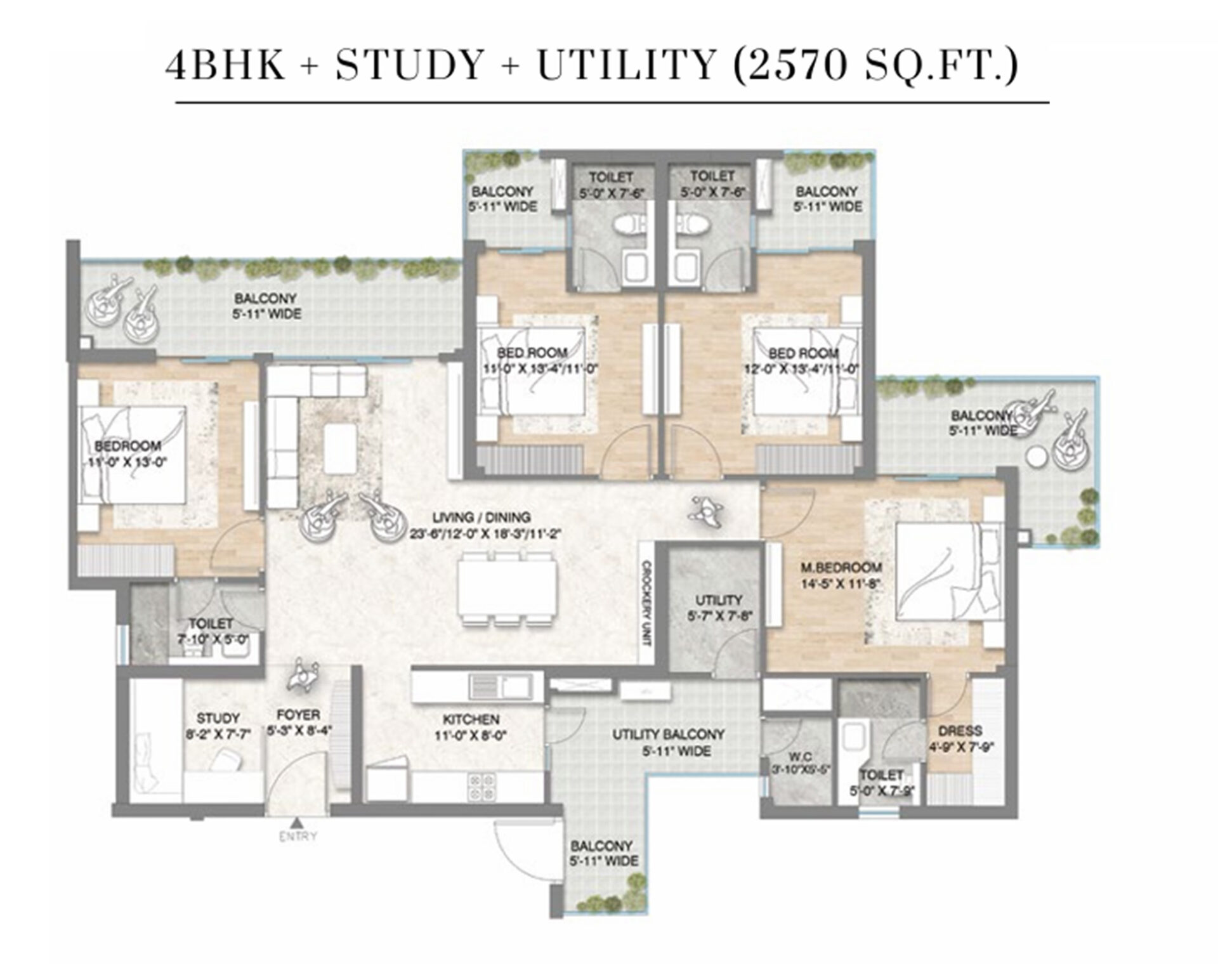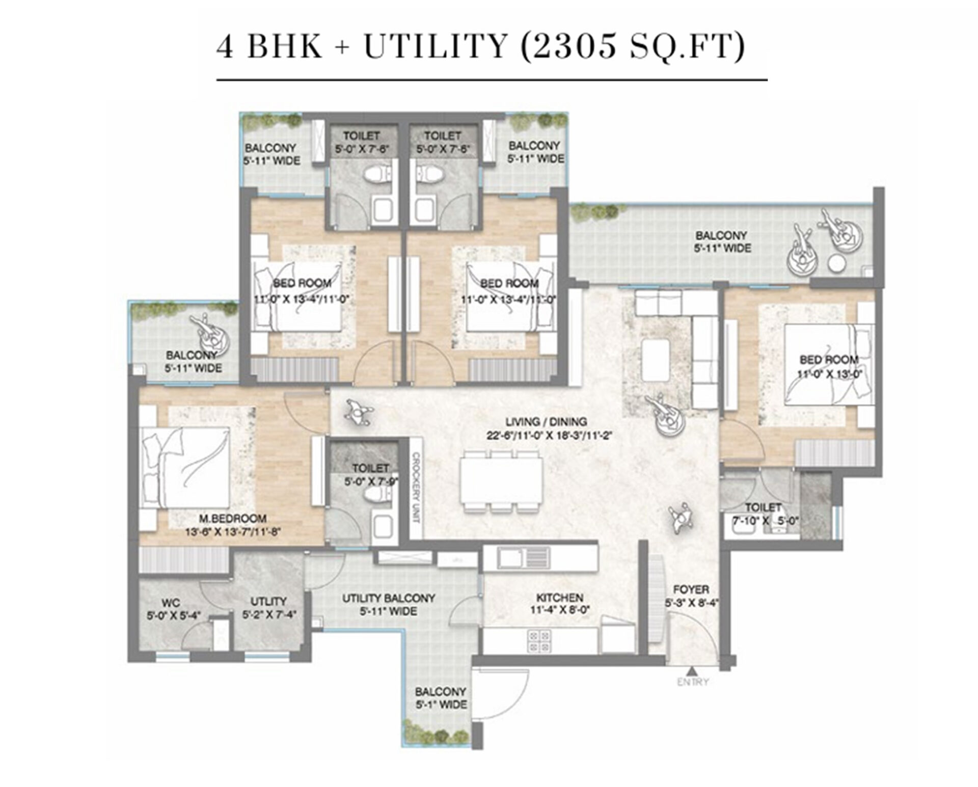 Apartment Choices: Luxurious 3 BHK (1,605–2,170 sq ft), 4 BHK (2,305–2,670 sq ft), and premium 3.5 & 4.5 BHK layouts